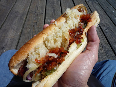 for the dipping sauce, crush some fresh garlic, vinegar, salt, pepper and some red hot chilli peppers.